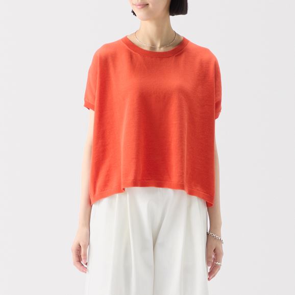 ストンと落ち感のあるニットは、さらっと一枚で着ても上品な印象に。カジュアルにデニムと合わせても◎。幅広いコーディネートが楽しめます。綿100%のニットで自宅での洗濯が可能。肌触りが良くストレスフリーな着心地です。