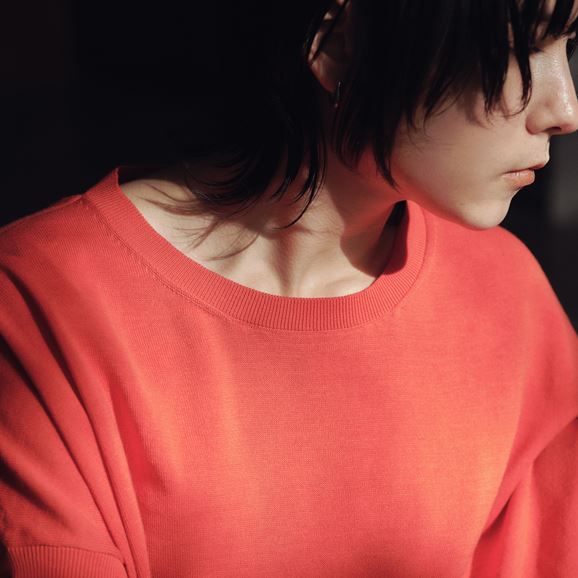 素材に向き合い、生産背景を大切にしながら、生産者とお客さまをつなぐ想いが込められた一着です。山形県内の老舗紡績・ニットメーカーで行き場をなくしていた糸を使用し作りました。