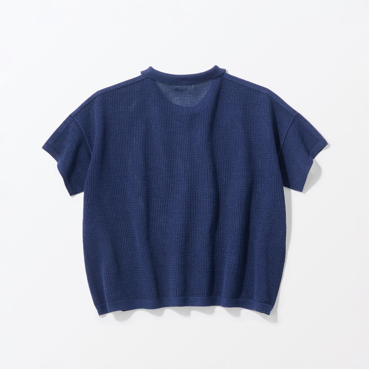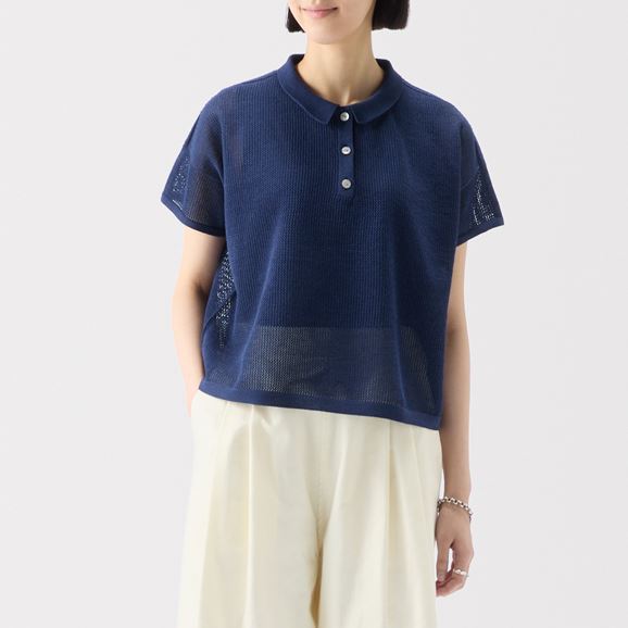 紙を含んだ糸を使用しているため軽さと吸湿速乾性が魅力。ざっくりした編地で風通し良く快適な着心地です。