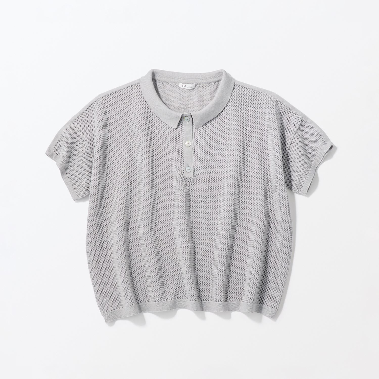 min&#228; perhonen皆川明さん監修のもと、各地の生産現場で生まれた残反や残糸を活かして仕立てたイデーのウェアシリーズ「H& by POOL(ハンド バイ プール)」のニットシャツ。<br>素材に向き合い、生産背景を大切にしながら、生産者とお客さまをつなぐ想いが込められた一着です。山形県内の老舗紡績・ニットメーカーで行き場をなくしていた糸を使用し作りました。<br>Silver Gray、Navy:さらりとした肌触りの綿と、軽さ・通気性・吸水速乾性に優れた紙、ポリエステルを撚り合わせた糸を使用しています。<br><dl class="detail_image"><dt><img src="/images/item_page/hand/26ss/cttn_knt_sht01.jpg" alt="" class="detailphoto"/></dt><dd class="detail_txt"><h5>風を通すさらりとした着心地</h5><p>紙を含んだ糸を使用しているため軽さと吸湿速乾性が魅力。ざっくりした編地で風通し良く快適な着心地です。</p></dd></dl><dl class="detail_image mt40"><dt><img src="/images/item_page/hand/26ss/cttn_knt_sht02.jpg" alt="" class="detailphoto"/></dt><dd class="detail_txt"><h5>レイヤードを愉しめるアイテム</h5><p>ポロカラーとほのかな透け感が洗練された印象。スカートやパンツなどさまざまなボトムスと組み合わせやすく、シンプルなデザインで着回しのきく1枚です。</p></dd></dl><h5 class="mt20">コーディネートおすすめアイテム</h5><ul class="flex col4"><li><a href="/shop/g/g4550723208154/"><img src="/img/goods/12/4550723208154_org.jpg" alt="H& by POOL Wide Pants Off White" class="detailphoto"><p class="itemName">H& by POOL Wide Pants Off White</p></a></li><li><a href="/shop/g/g4547315976416/"><img src="/img/goods/12/4547315976416_org.jpg" alt="H& by POOL Denim Pants 34 Light Gray" class="detailphoto"><p class="itemName">H& by POOL Denim Pants 34 Light Gray</p></a></li><li><a href="/shop/g/g4550723208123/"><img src="/img/goods/12/4550723208123_org.jpg" alt=H& by POOL Pants Gray Stripe" class="detailphoto"><p class="itemName">H& by POOL Pants Gray Stripe</p></a></li><li><a href="/shop/g/g4550723291217/"><img src="/img/goods/12/4550723291217_org.jpg" alt="H& by POOL Cotton Lib Longsleeve Black" class="detailphoto"><p class="itemName">H& by POOL Cotton Lib Longsleeve Black</p></a></li></ul><h5 class="mt20">H& by POOLシリーズの全ラインナップはこちら</h5><a href="/shop/e/eHand/"><img src="/images/item_page_banner/itemPage_bnr_hand.jpg" alt="【特集】H& by POOL" class="itempagebnr"></a>