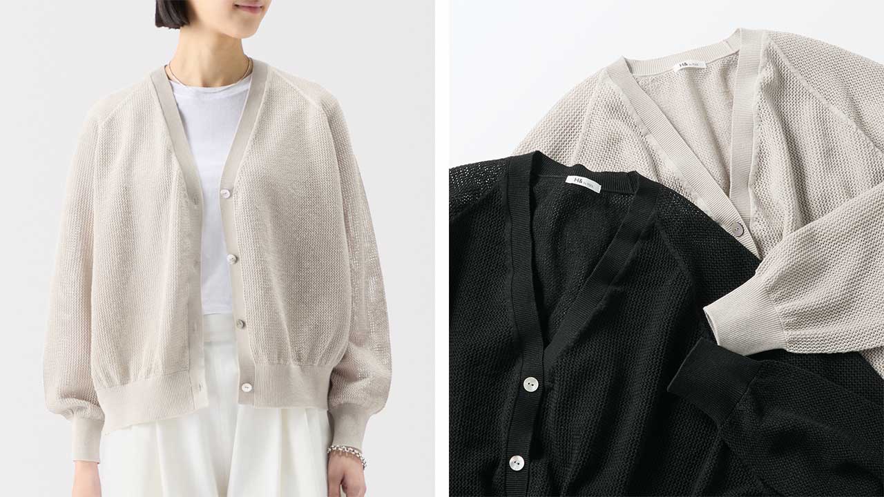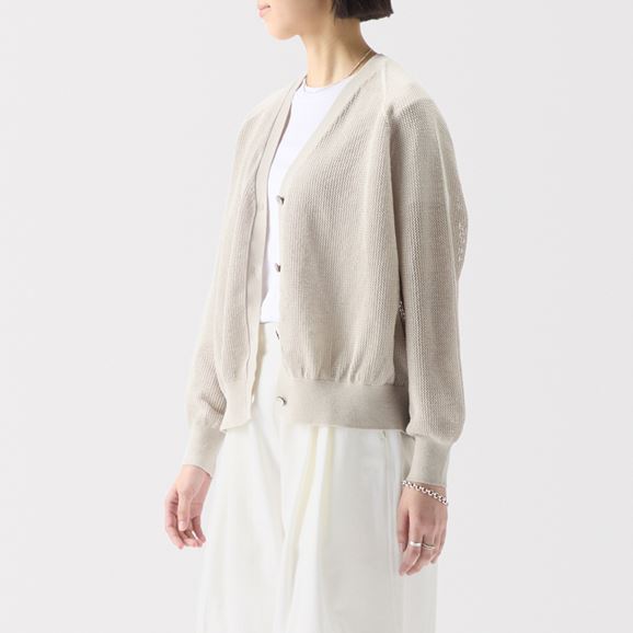1枚あると重宝する着回しの効くシンプルなカーディガン。薄手で軽く持ち歩きやすいので、旅行にも便利です。夏の日よけや冷房よけにもおすすめです。