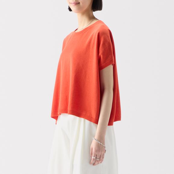 ストンと落ち感のあるニットは、さらっと一枚で着ても上品な印象に。カジュアルにデニムと合わせても◎。幅広いコーディネートが楽しめます。綿100%のニットで自宅での洗濯が可能。肌触りが良くストレスフリーな着心地です。
