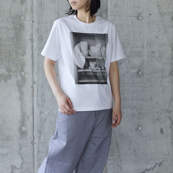 イデーがこれまで撮影してきたスタイリング写真よりセレクトした2枚をモノクロでプリントしたオリジナルデザインTシャツ。