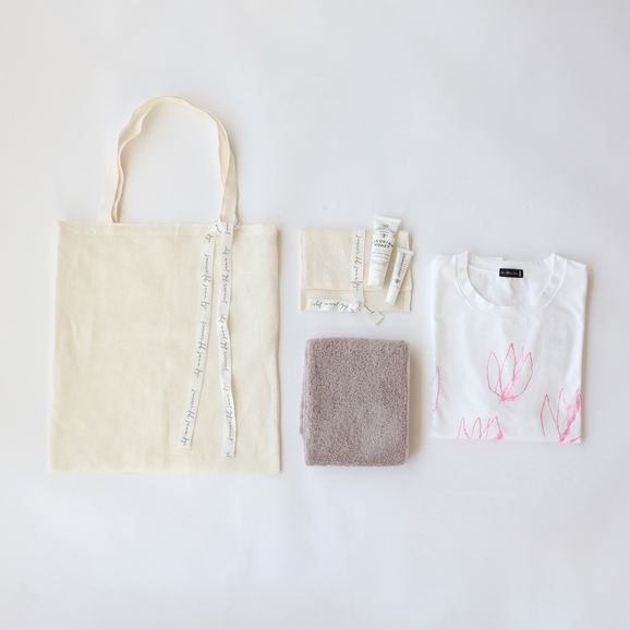 ポーチは紐で無造作に結べるので日用品から文房具まで幅広く使えます。どちらもリボンがアクセントです。