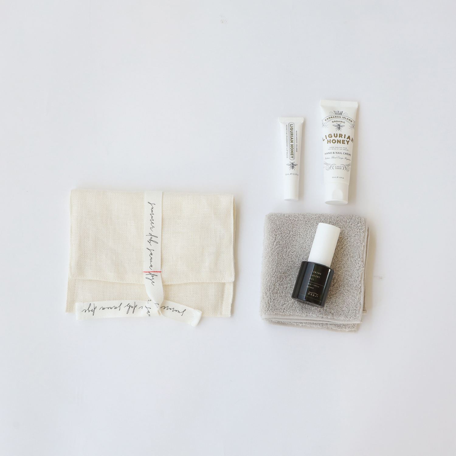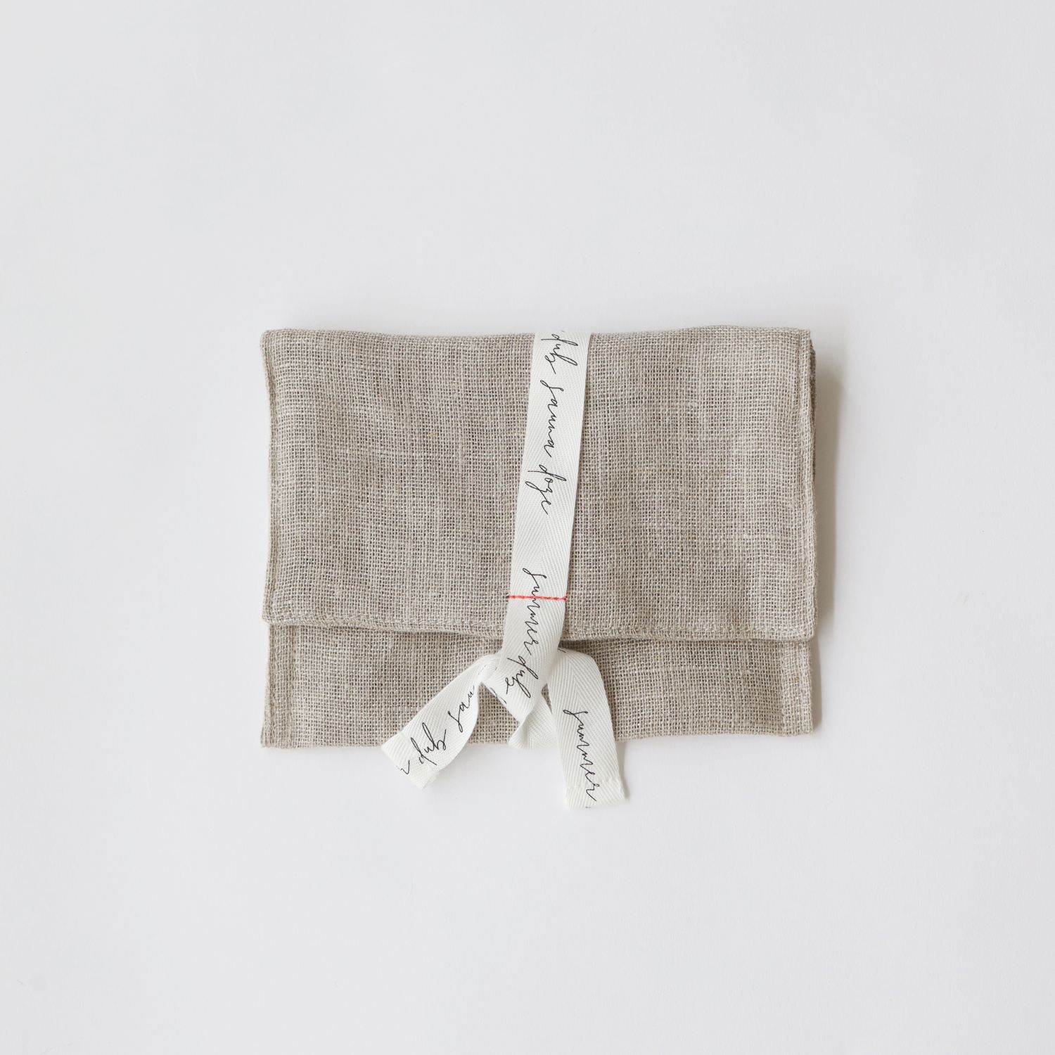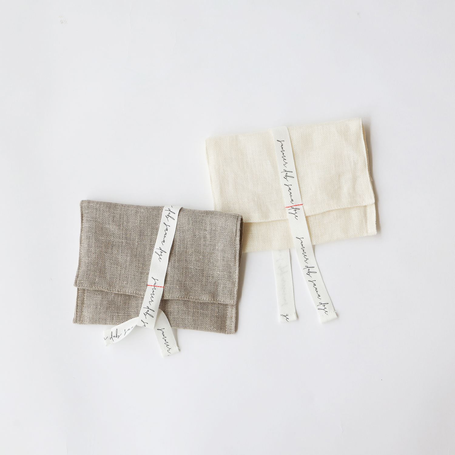 ポーチは紐で無造作に結べるので日用品から文房具まで幅広く使えます。どちらもリボンがアクセントです。