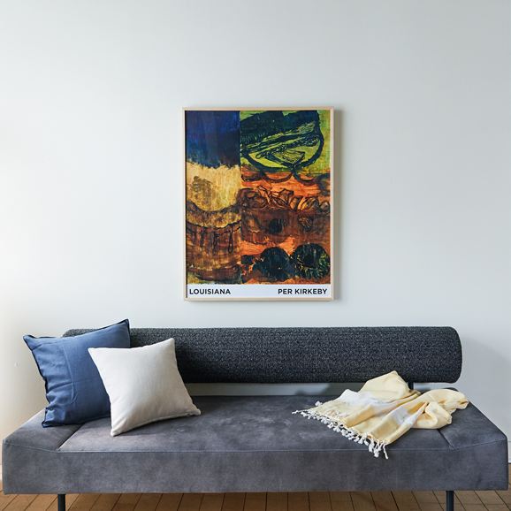 ルイジアナポスターの特徴は、単なるエキシビジョンポスターではなく作品として完成されているのが魅力です。ポスターでありながら美術作品と楽しむことができます。それぞれの絵とルイジアナがデザインしたタイポグラフィは美しく、インテリアアートとしての価値を高めています。サイズは大型作品が多くインテリアの中心的な存在となります。