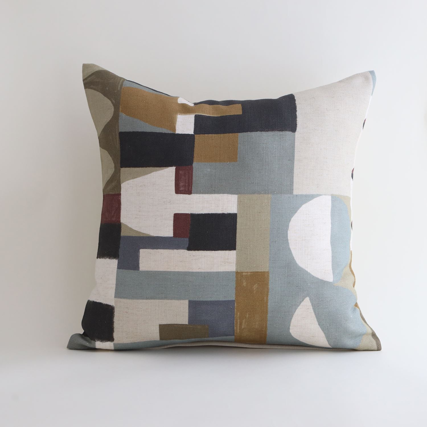 フランスのテキスタイルブランド「CAMENGO」の生地を使ったクッションカバー。「CAMENGO」は、暮らしの中で色を組み合わせることの楽しさや、色空間で過ごす心地よさ、素材とテクスチャーが生み出す光を愉しめ、優雅な気分をあたえてくれる人気のブランドです。<br>「Astratto」は民族的なパターンにインスパイアされた抽象的で幾何学的なデザインです。