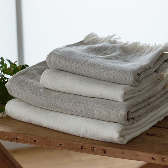 ナチュラルな表情が楽しめる生成りと、すっきりとした印象の白。それぞれ異なる雰囲気で、暮らしに心地よくなじみます。​贈り物にもおすすめです。