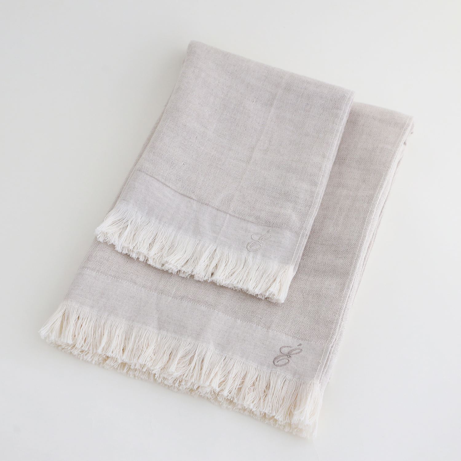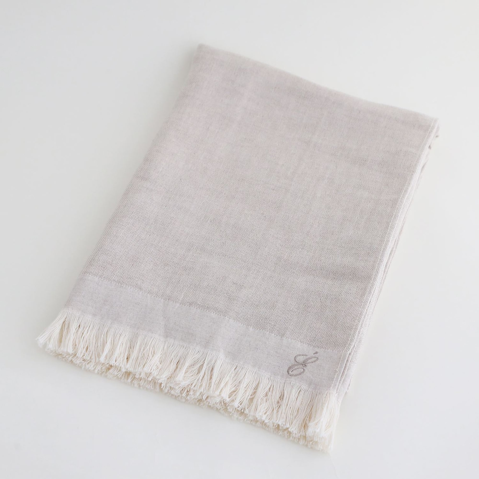 「É」を象ったオリジナルの刺繍が、さりげないアクセントになった上質なリネンコットンガーゼタオル。​