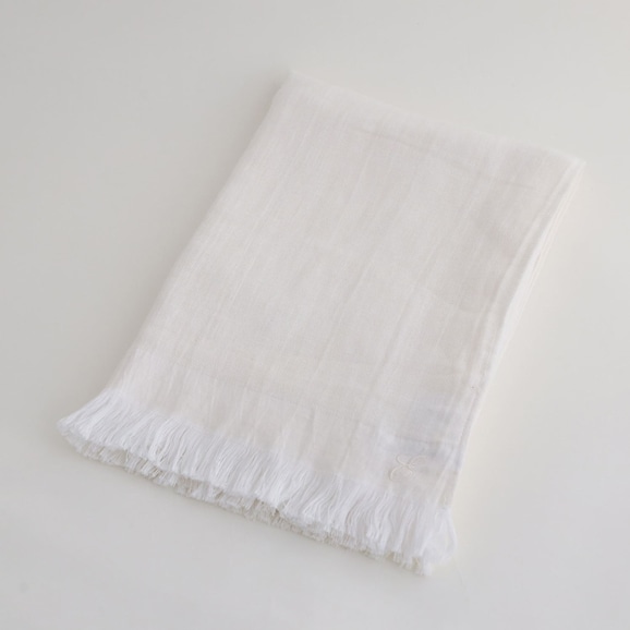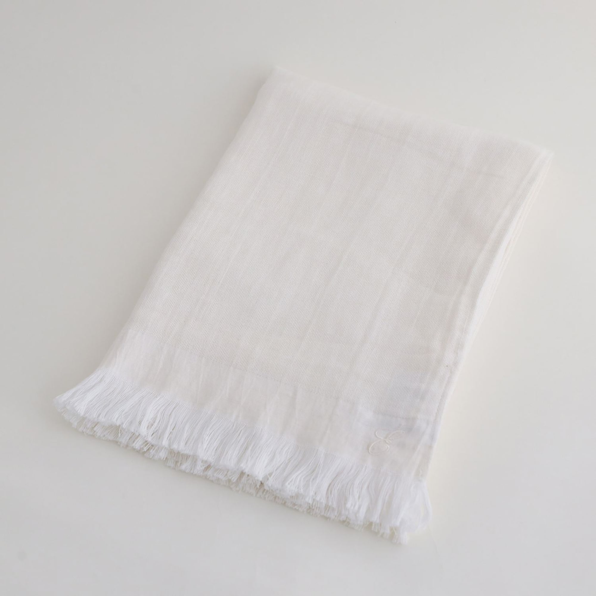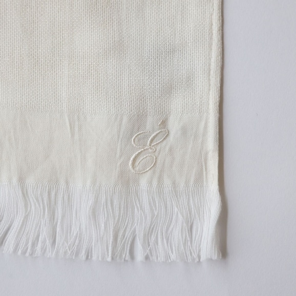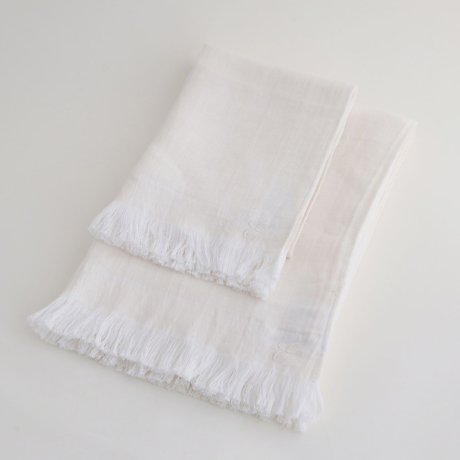 「É」を象ったオリジナルの刺繍が、さりげないアクセントになった上質なリネンコットンガーゼタオル。​