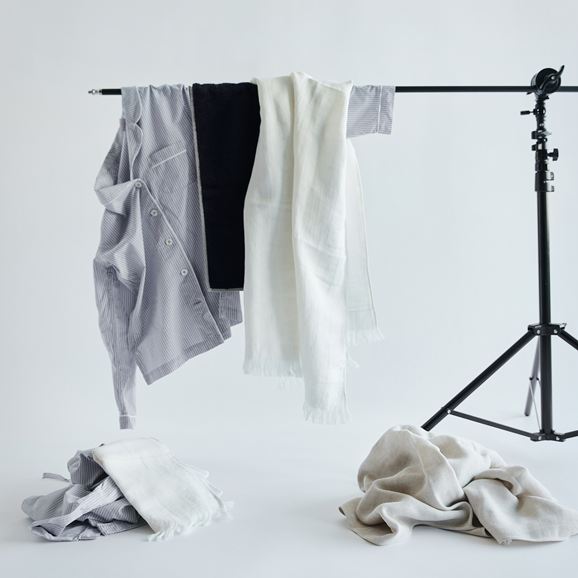 縦糸にコットン、横糸にリネンを用いた二重ガーゼは、やわらかさとシャリ感をあわせ持つ軽やかな風合い。使うほどに肌になじみ、リネンならではの自然な風合いの変化もお楽しみいただけます。​