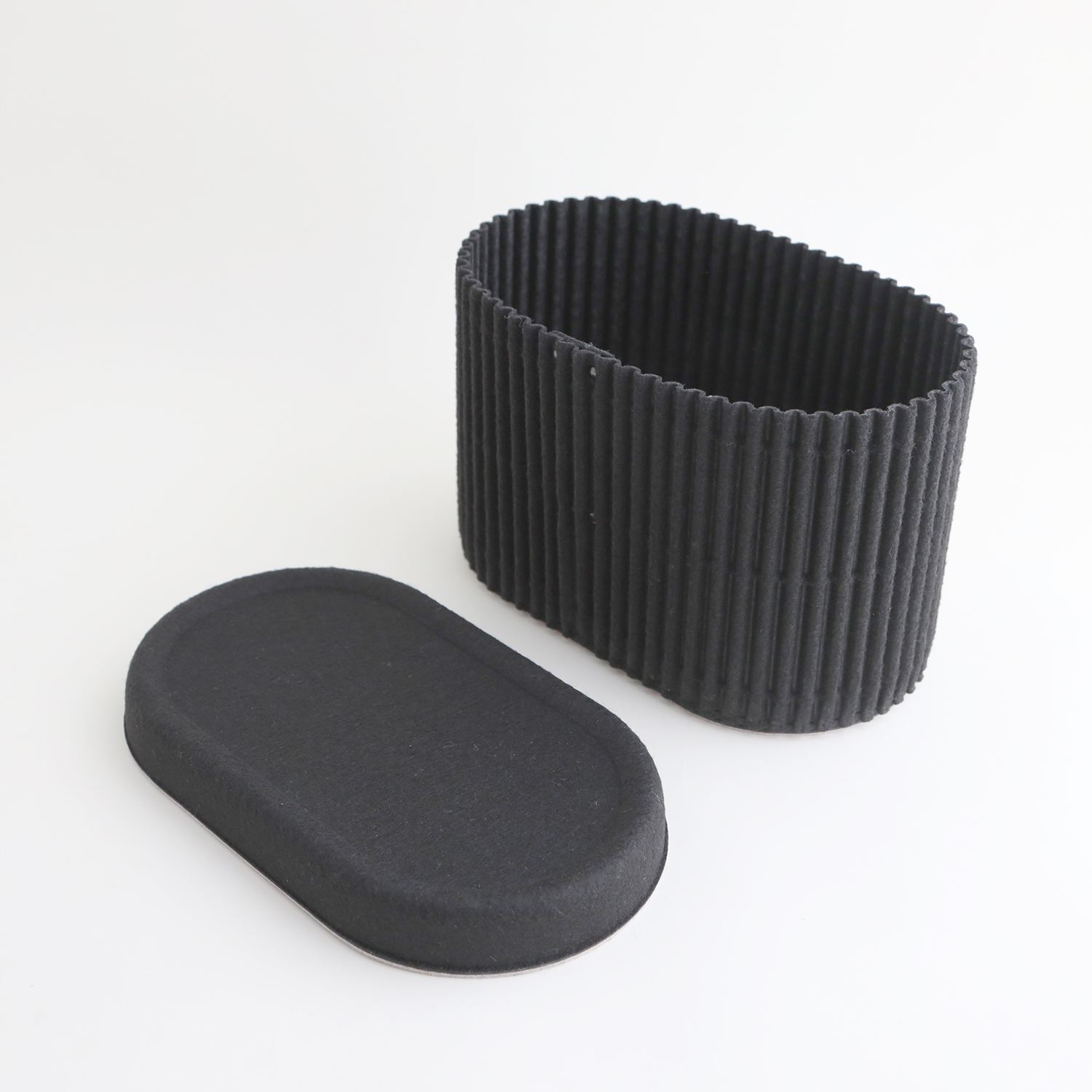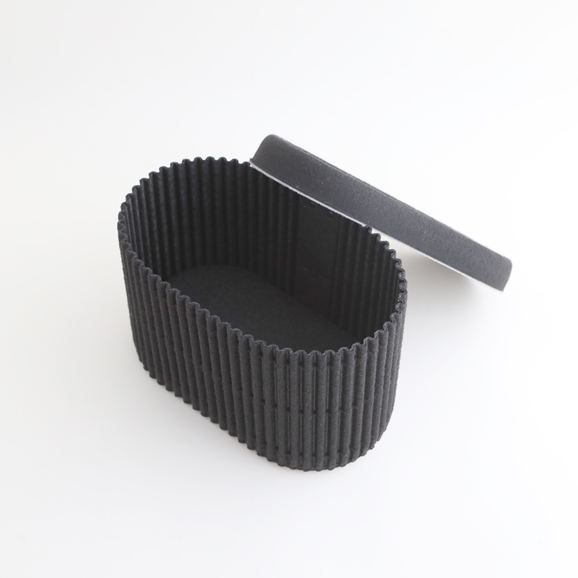ペットボトルからつくられた再生フェルト素材で、形が崩れにくく安定感があるのに非常に軽く、ほどよいクッション性で、落としても割れないところが、身近な小物を収納するのにぴったり。