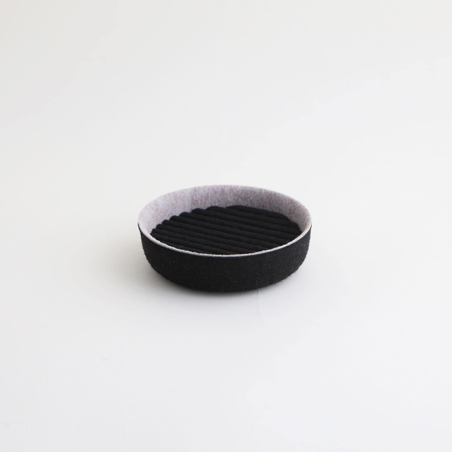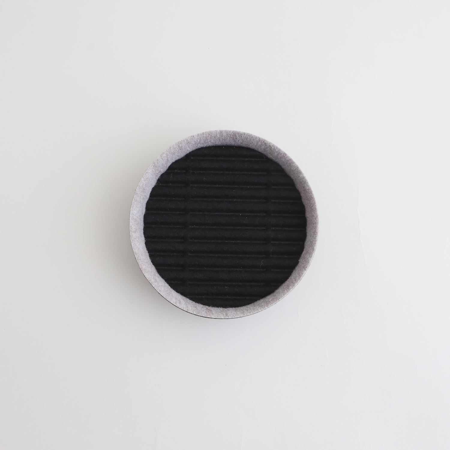 イデーオリジナルの収納アイテム、Saza Series(サザ シリーズ)。さざなみのようなフェルトの凹凸がデザインアクセントのボックスとトレーです。