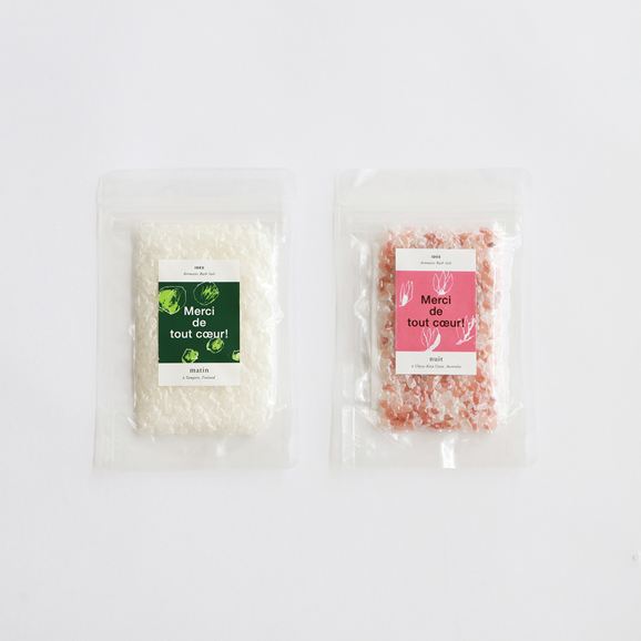 ヒマラヤ山脈の岩塩を使ったイデーオリジナルのバスソルトの限定パッケージです。 ”Merci de tout coeur”「心からありがとう!」のメッセージが添えられています。母の日やちょっとしたギフトにもおすすめです。