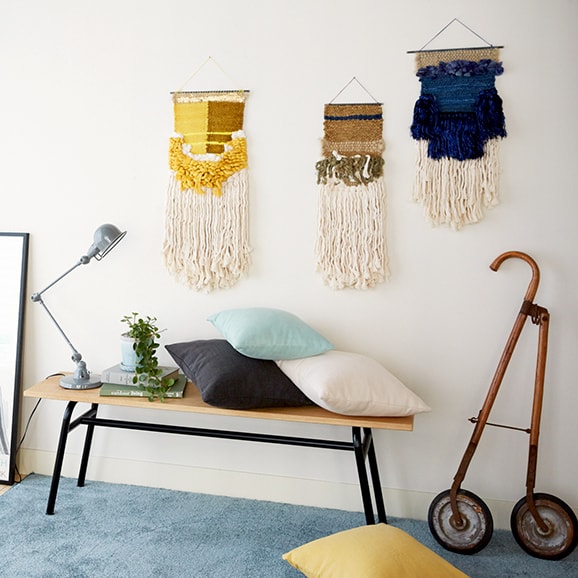 カリフォルニアの郊外に工房とショップを構え、テキスタイルを中心に制作を行うアーティストJanelle Pietrzak (ジャネル ピーターザック)。彼女の代表作でもあるタペストリーは、色彩の豊かさや独自性のある素材の組み合わせが魅力です。お部屋に飾るだけで、楽しい空気の流れる空間になるでしょう。