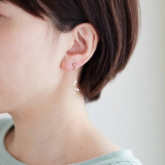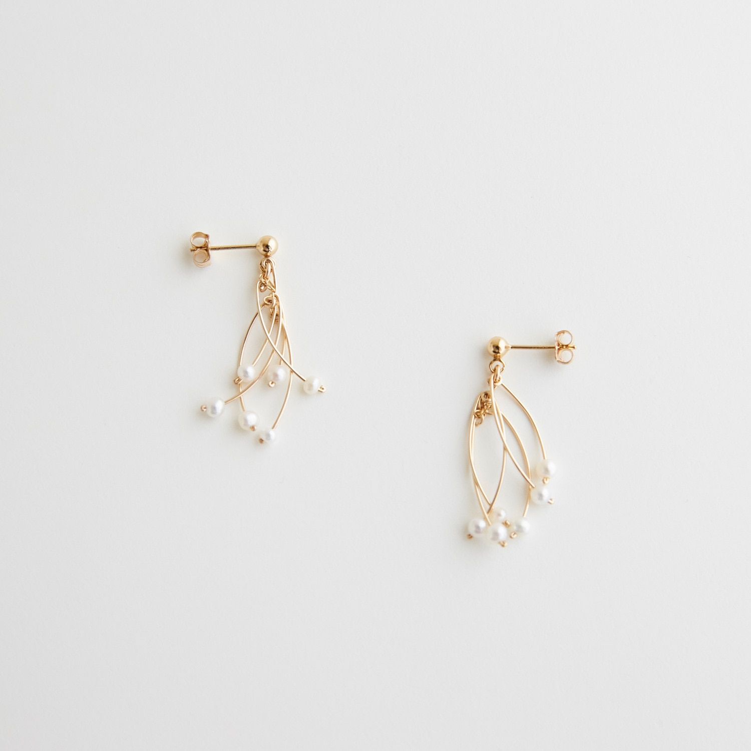 ユーカリ・ポポラスをモチーフにした、揺れ動く美しい姿が特徴のシリーズ。華やかな装いにもシンプルなスタイルにも合う、使い勝手の良いピアスです。